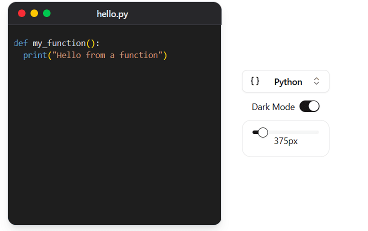 Raylite is a modern developer tool to generate beautiful code snippets as images. Perfect for sharing on social media, embedding in blogs, or enhancing documentation. With support for multiple languages, themes, fonts, and export options, Raylite makes it effortless to turn your code into art.